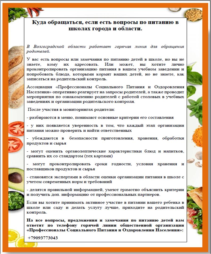 Управлением Роспотребнадзора по Волгоградской области в связи с началом нового учебного года организовано тематическое консультирование граждан по вопросам организации питания в школах по телефонам «горячих линий»: